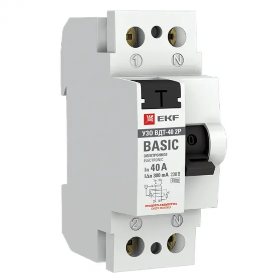 Устройство защитного отключения УЗО ВДТ-40 2P 40А/300мА (электронное) EKF Basic