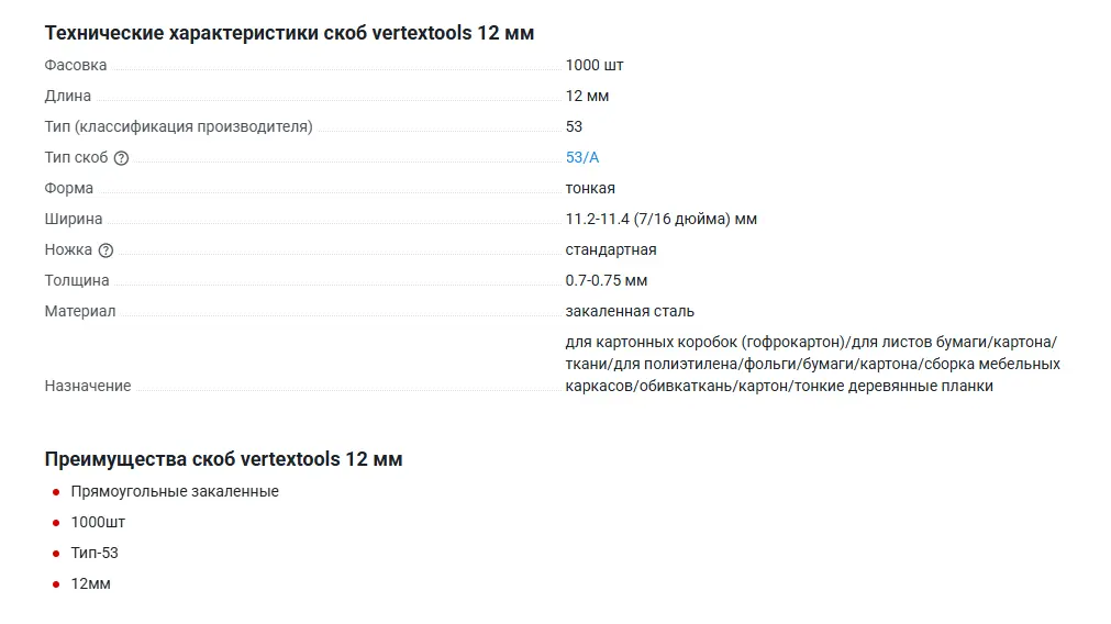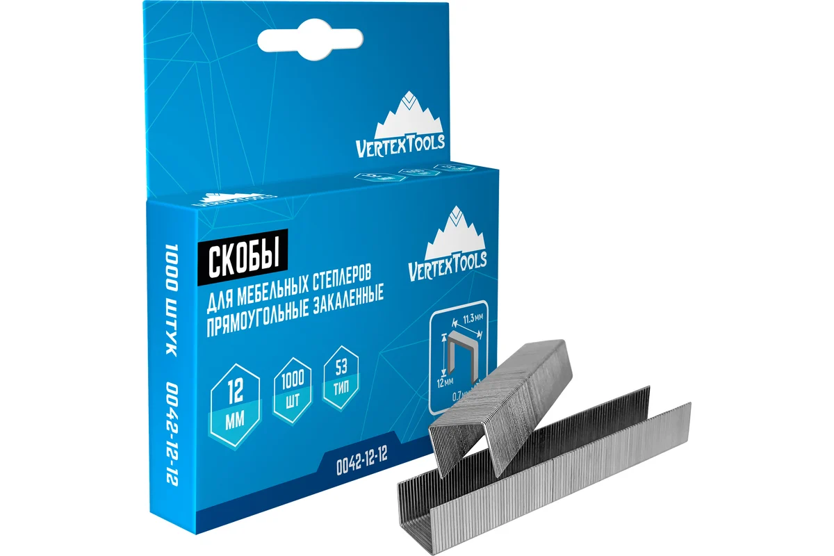 Скобы для мебельных степлеров vertextools 12 мм 0042-12-12 являются сменным элементом для ручных степлеров. Изготовлены из закаленной стали.