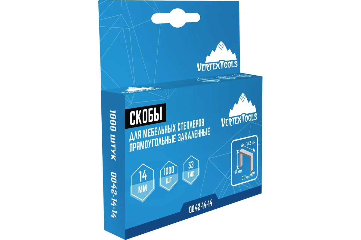 Скобы для мебельных степлеров vertextools 14 мм 0042-14-14 являются сменным элементом для ручных степлеров. Изготовлены из закаленной стали.