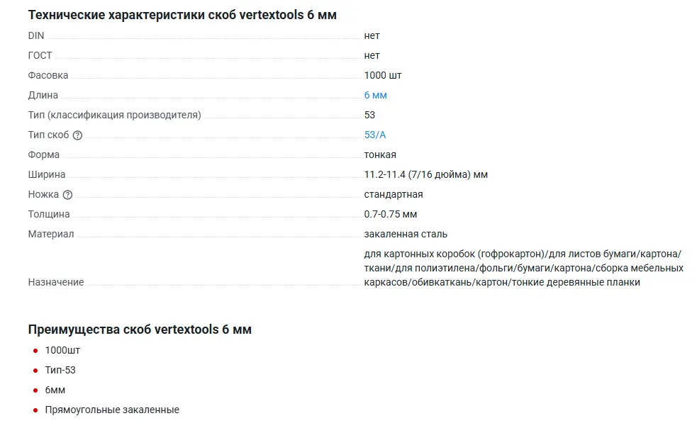 Скобы для мебельных степлеров vertextools 6 мм 0042-06-06 являются сменным элементом для ручных степлеров. Изготовлены из закаленной стали.
