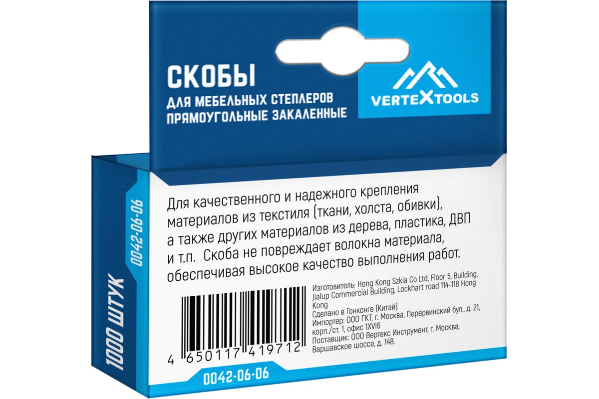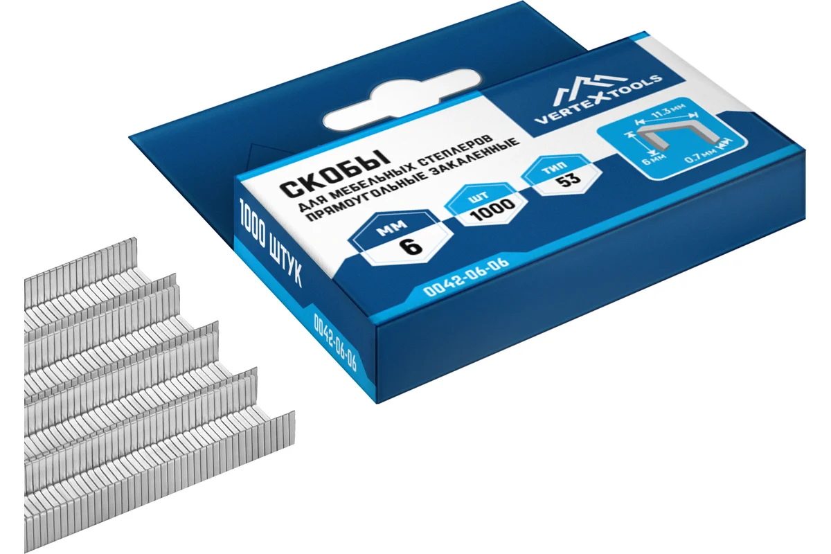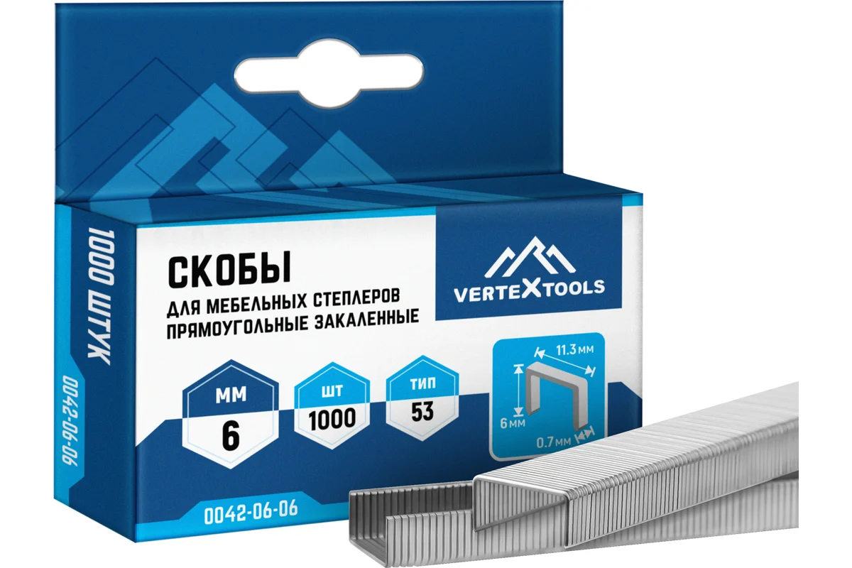 Скобы для мебельных степлеров vertextools 6 мм 0042-06-06 являются сменным элементом для ручных степлеров. Изготовлены из закаленной стали.