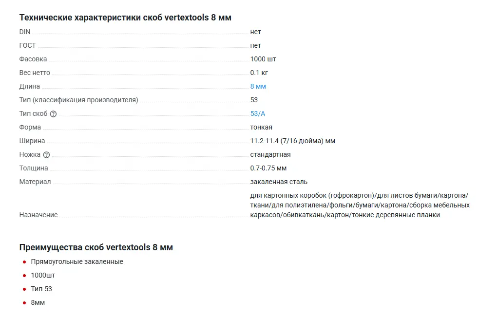 Скобы для мебельных степлеров vertextools 8 мм 0042-08-08 являются сменным элементом для ручных степлеров. Изготовлены из закаленной стали.