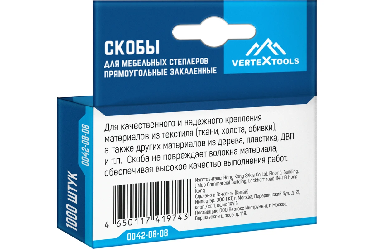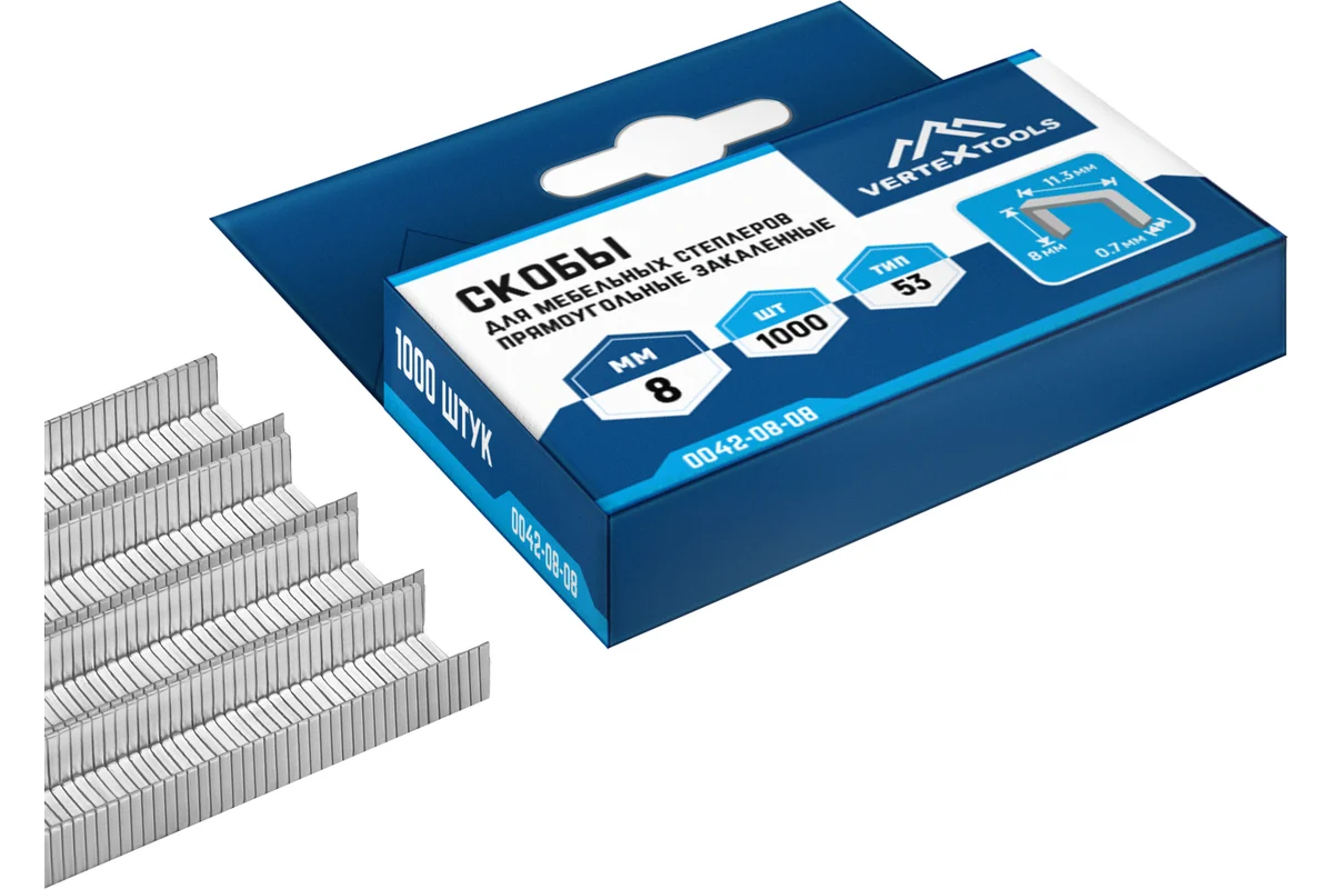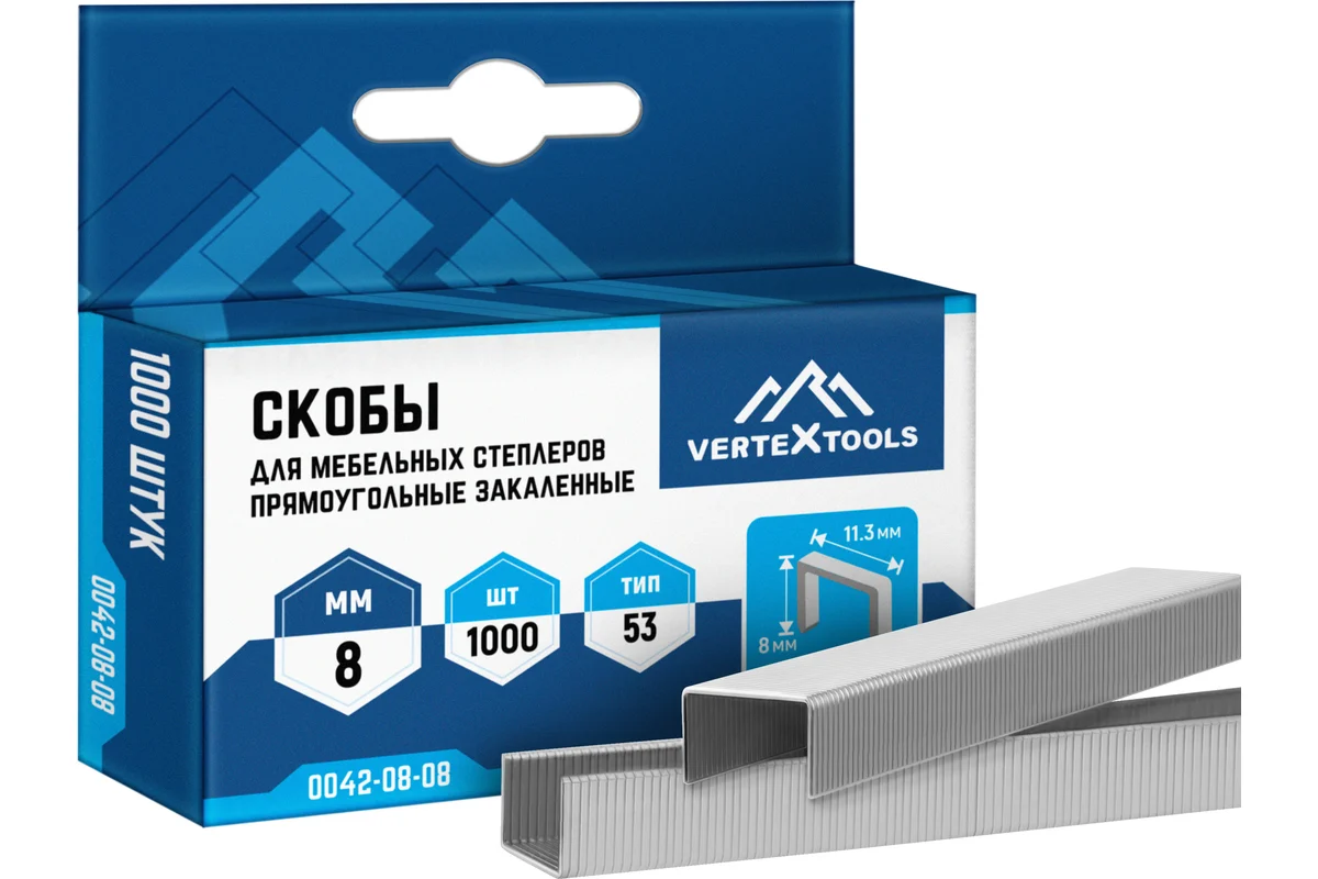 Скобы для мебельных степлеров vertextools 8 мм 0042-08-08 являются сменным элементом для ручных степлеров. Изготовлены из закаленной стали.