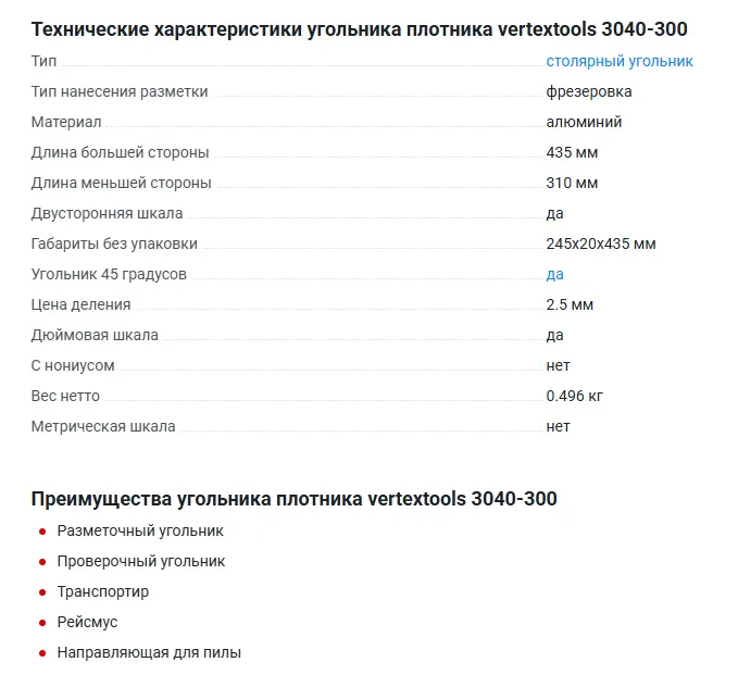 Угольник выполнен из алюминия, фрезерованная разметка никогда не сотрется и позволяет использовать угольник, как рейсмус и для направления электроинструмента.