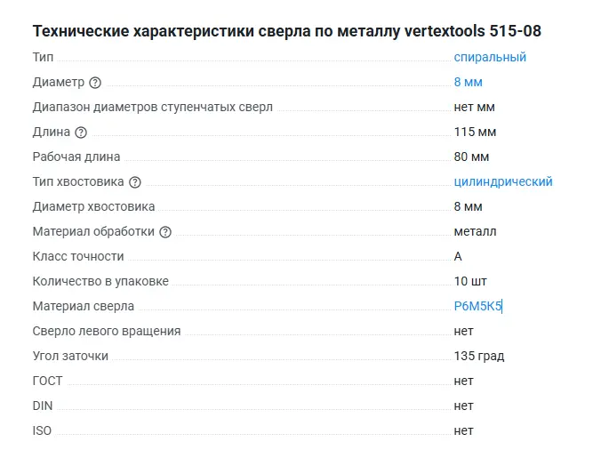 Сверло по металлу vertextools 515-08 предназначено для дрелей. Используется для сверления отверстий в металле.