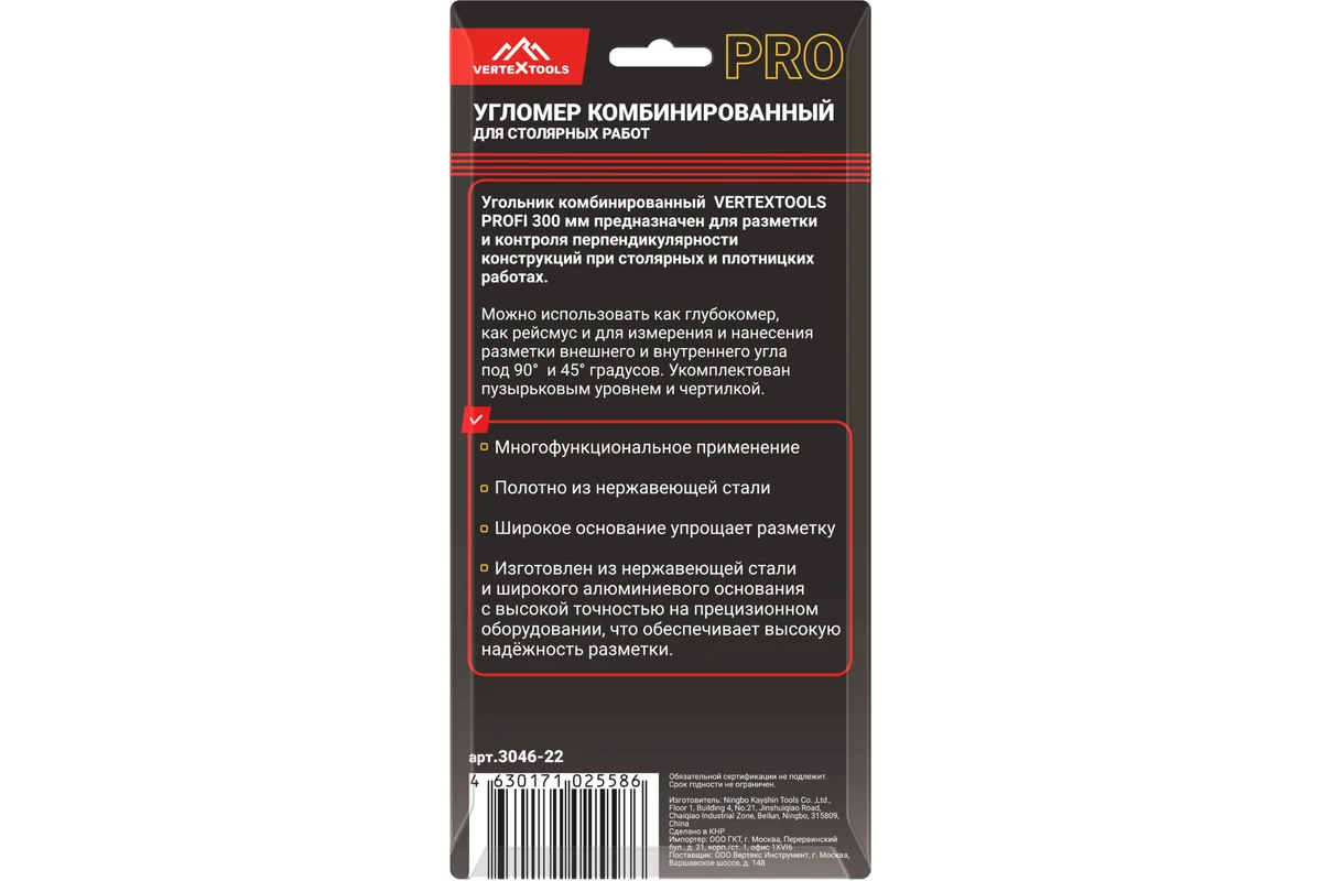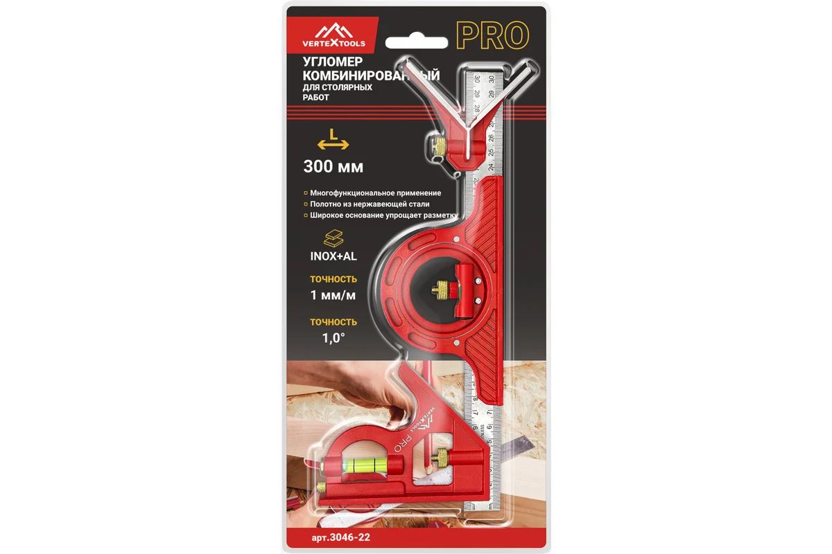 УГЛОМЕР КОМБИНИРОВАННЫЙ VERTEXTOOLS PROFI ДЛЯ СТОЛЯРНЫХ РАБОТ 300ММ, INOX+AL ФРЕЗЕРОВАННЫЙ (1/10/30)