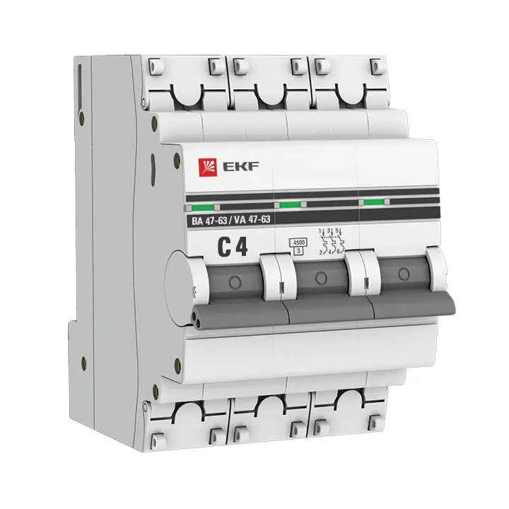 Автоматический выключатель 3P 4А (C) 4,5kA ВА 47-63 EKF PROxima