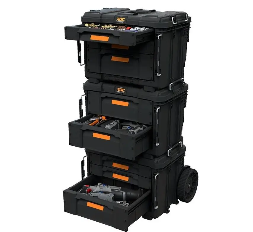 Ящик для инструментов Keter ROC Pro Gear 2.0 4 Drawers 17212782 оснащен 4 выдвижными отсеками, которые используются для хранения мелких инструментов и расходных материалов. Объем 24.8 литра, внешние габариты 56,5 х 37,5 х41,3 см.