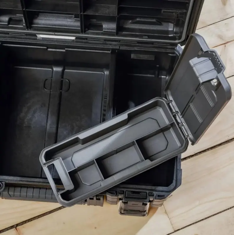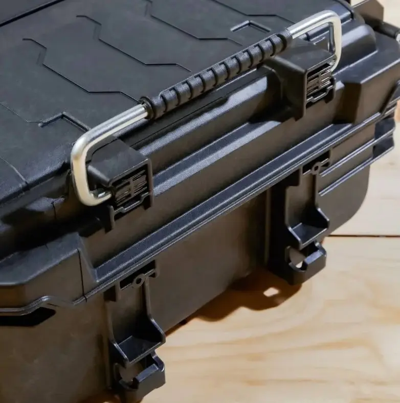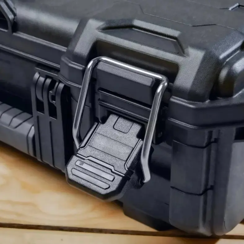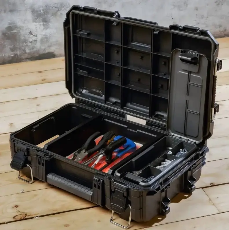 Износоустойчивый и готовый к работе, оснащен прочными защелками со степенью защиты IP65 и ушком для навесного замка (навесной замок в комплект не входит), внутренним небольшим органайзером и двумя разделителями, которые позволяют хранить оборудование в организованном порядке.
