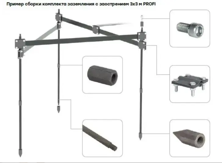 Комплект заземления с заострением 3х3м PROFI, HZ EKF PROxima